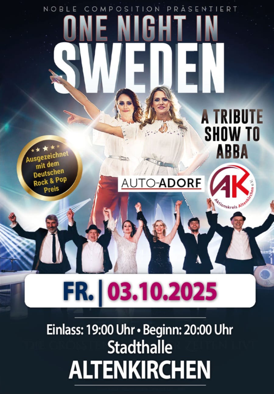 Der Name Noble Composition steht für eine Band aus professionellen Live- und Studiomusikern der nationalen und internationalen Elite. Im Mittelpunkt der ABBA-Tribute-Show stehen die Sängerinnen Linda und Simone. Mit ihrer unverwechselbaren Gesangsperformance sind sie das Highlight und ein Klangerlebnis für jedes Publikum. Nicht umsonst wurde die Show mit dem Deutschen Rock- und Pop-Preis ausgezeichnet!